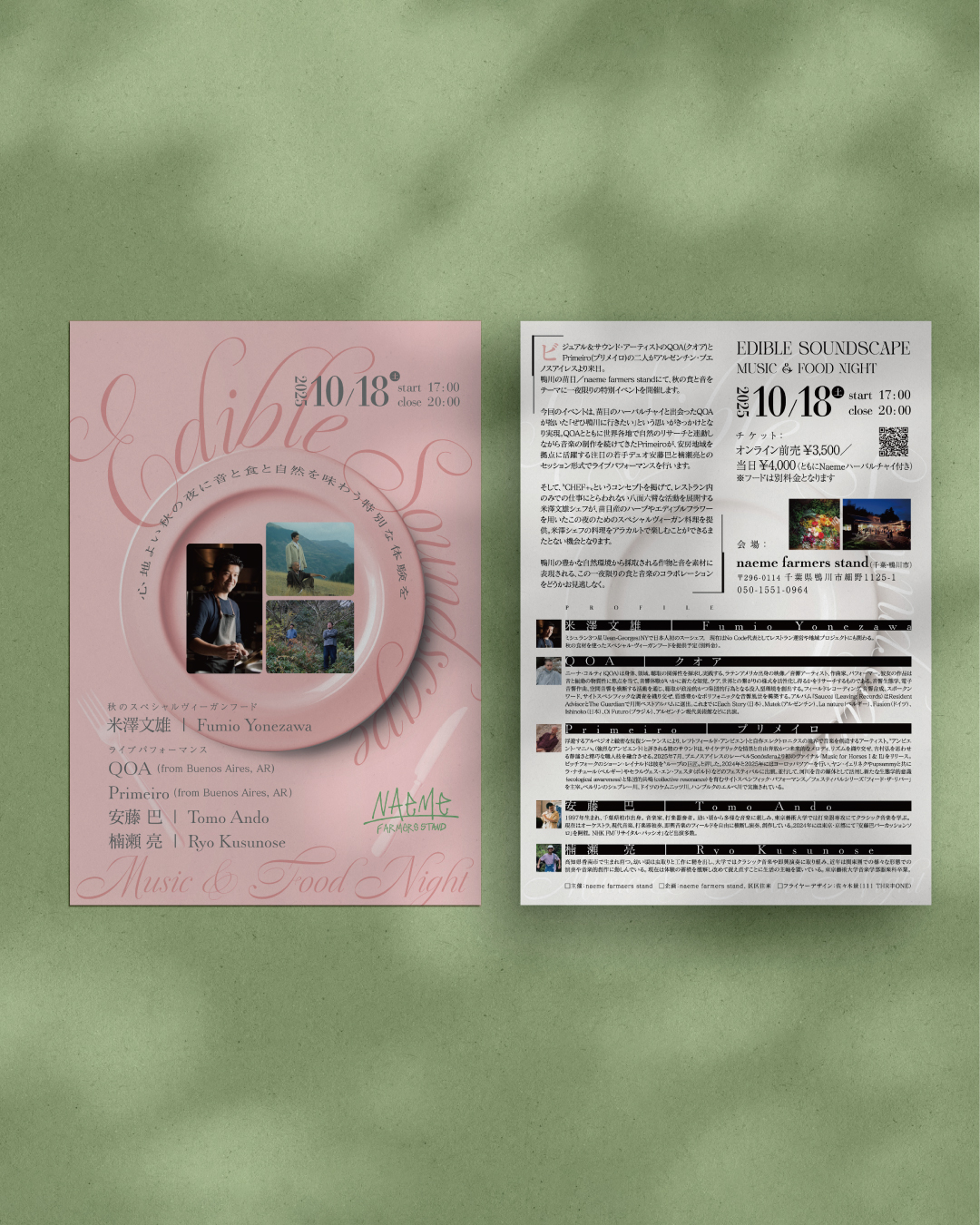 オンライン前売¥3,500/当日¥4,000(ともにNaemeハーバルチャイ付き)