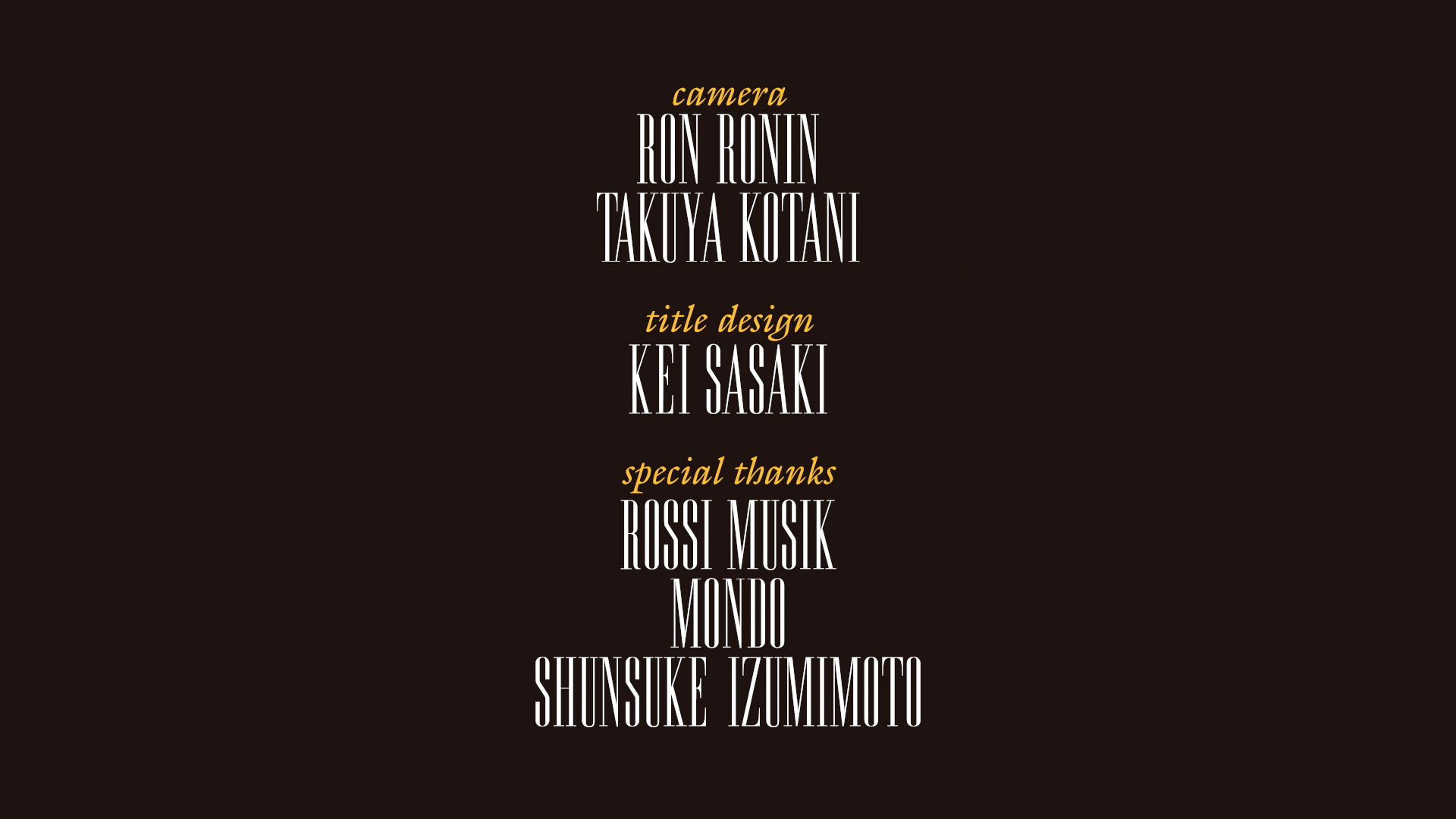special thanks: ROSSI MUSIK, MONDO, SHUNSUKE IZUMIMOTO